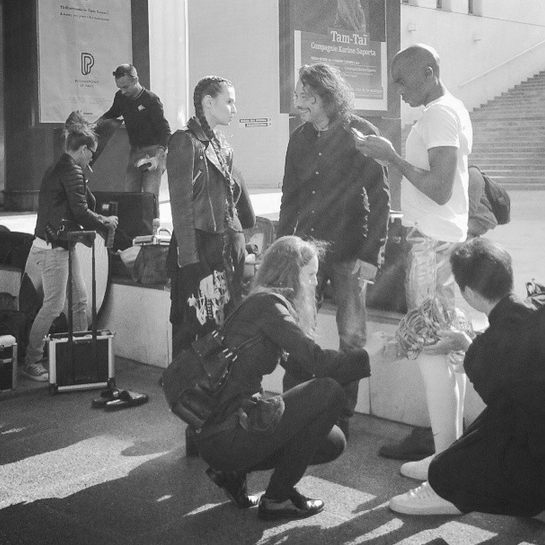 Sore itu, lantai bawah hotel kami yang mungil–Eugène en Ville di Rue Buffault–disesaki model-model Perancis yang hendak mengikuti casting. Dari sekitar 35 model yang diundang untuk casting, hanya 2 orang yang akan terpilih untuk dipotret oleh Bram dan tim Michel Dupré: satu model lelaki, dan satu model perempuan. Sayangnya, sore itu saya tak sempat melihat para model lelaki berjajar di lobi. Dalam pemotretan yang akan berlangsung lusa, model lelaki yang terpilih akan mengenakan desain rancangan Sylvester, sementara model perempuan akan mengenakan rancangan Tex Saverio.