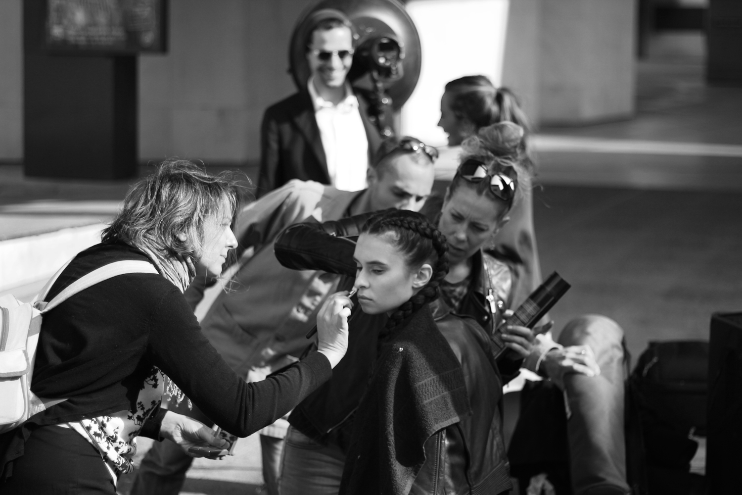Subuh di Paris adalah waktu ketika suhu turun semakin drastis. Yang paling nyaman, tentu saja bergelung dengan selimut di atas tempat tidur. Namun tidak demikian halnya bagi tim pemotretan yang sudah harus bangun pagi-pagi sekali. Para model harus mulai melakukan rias dan pengepasan. Sylvester harus memastikan bahwa riasan dan tata rambut sudah sesuai dengan yang diinginkan. Semuanya dilakukan bersamaan di dalam kamar hotel yang sempit. Di kamar saya saja–yang ditempati sendirian, seringkali saya terantuk kaki kursi, meja, atau koper sendiri. Jadi saya bisa membayangkan tantangan bekerja bersama beberapa orang di dalam sebuah kamar berukuran kecil.
