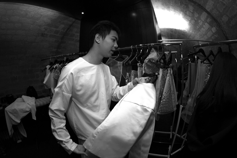 Ketika saya tiba pagi itu, masih dengan wajah mengantuk setelah tidur larut malam sebelumnya, lobi hotel Le Meurice telah disulap menjadi sebuah area showroom. Berbagai brand dari desainer terpilih berkesempatan memajang karya-karya mereka di sini, untuk dipamerkan kepada para buyer yang akan datang menjelang siang. Di ujung showroom itulah saya menghabiskan waktu sepagian.